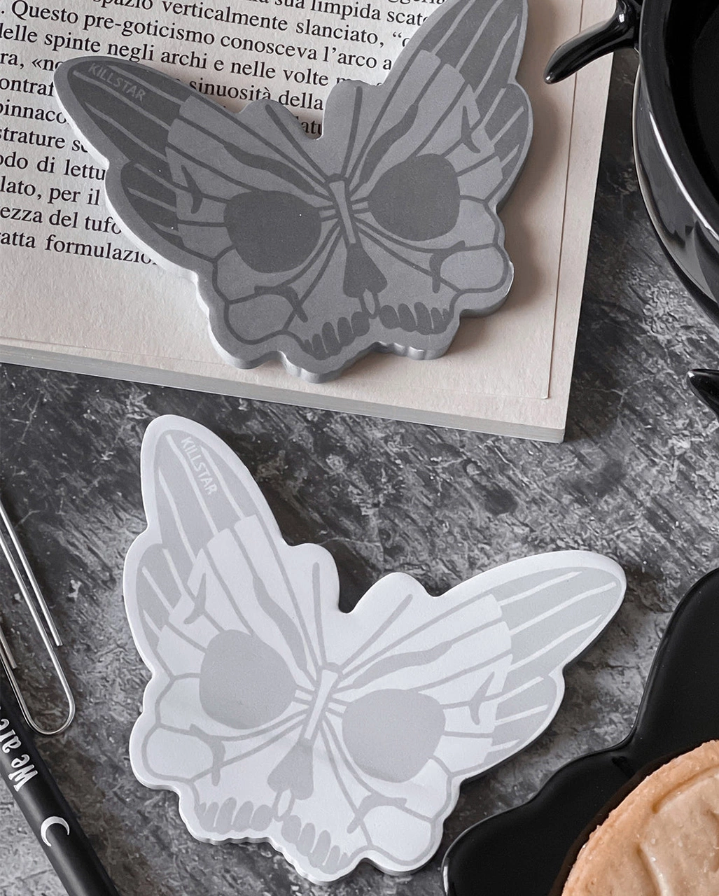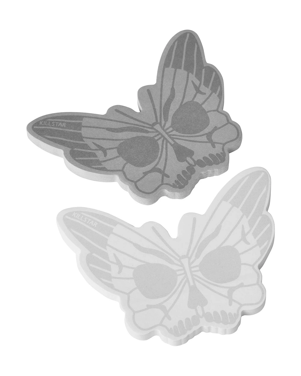 Notizen erinnern dich an wichtige Termine und sind super praktisch für jeden Tag. Ob To Dos, der Geburtstag deiner Katze oder die Einkaufsliste: Alles findet Platz auf den Sticky Notes von KILLSTAR. Die Klebezettel aus der Darkspell-Reihe lassen sich einfach ablösen und auf glatte Oberflächen, Heftseiten oder in dein Lieblingsbuch kleben. Das Design besticht mit einem Schmetterling mit Skull-Musterung.