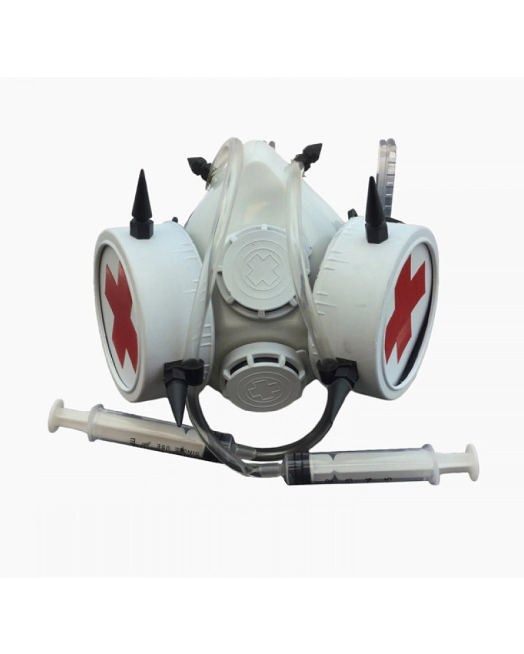 - Extravagante Cosplay & Rollenspiel Halbmaske mit Schläuchen & 2 Kanülen