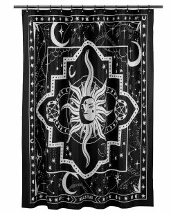 Der KILLSTAR Duschvorhang besteht aus wasserdichtem Material und wird mit Haken geliefert. Kosmische Symbole, wie Sterne, eine Sonne und Monde, laden zum Träumen ein und verleihen deinem Badezimmer einen mystischen Charme! Entdecke auch unseren Slasher Duschvorhang für Horror Fans!