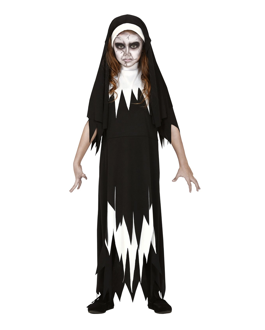 Das Fetzen Nonnen Kostüm Kleid für Kinder macht dich an Halloween zur unheimlichen Bet-Schwester, die mit dem Teufel im Bunde steht. Es kann ja nur mit dem Teufel zugehen, dass deine Trick or Treat Taschen so prall gefüllt sind. Vielleicht liegt es auch daran, dass dein Halloween Kostüm in der Gruselnacht für Angst und Schrecken bei den Nachbarn sorgt. Seit Film-Hits wie Conjuring und The Nun lange sind untote Nonnen ja mindestens genauso gruselig wie Clowns.