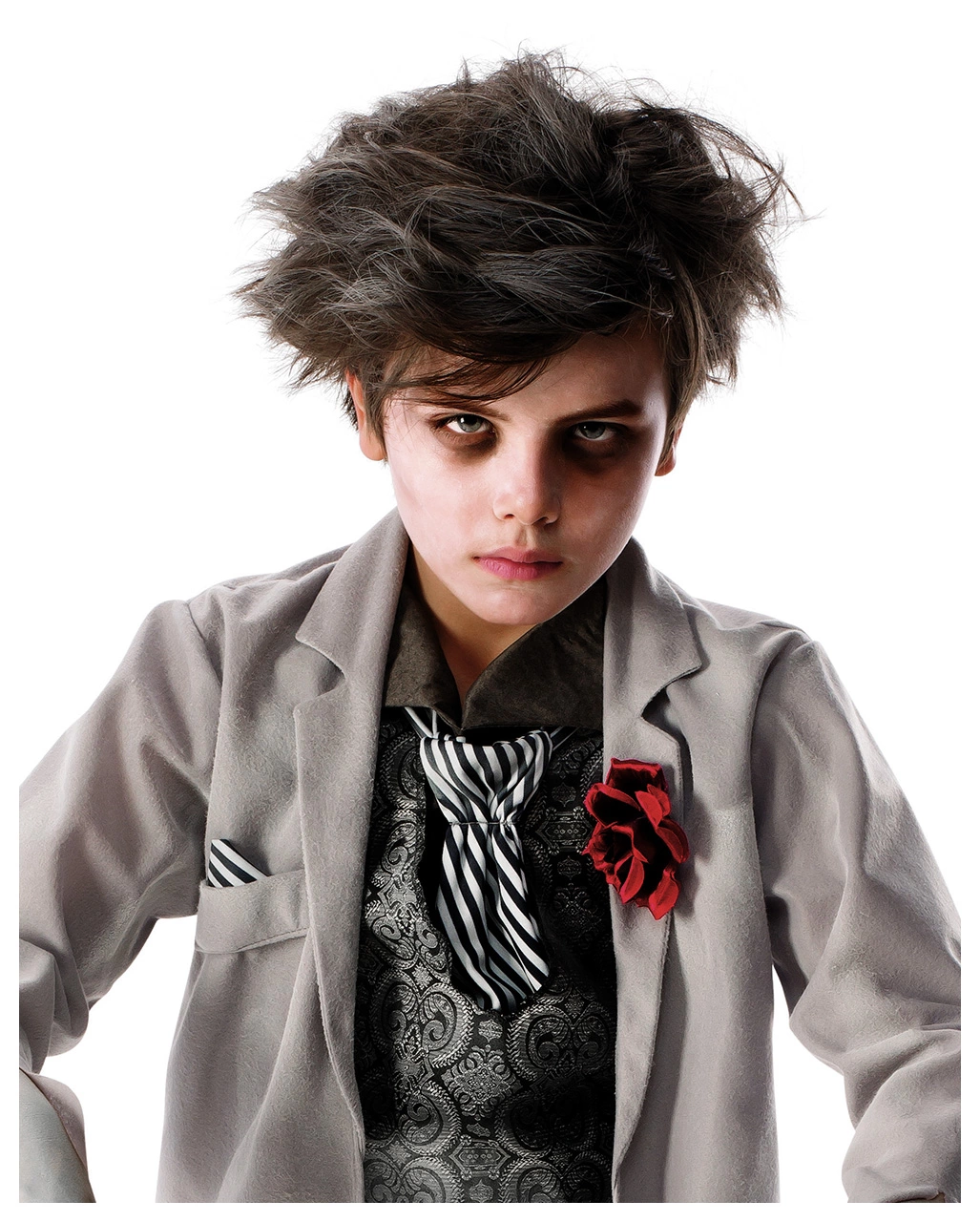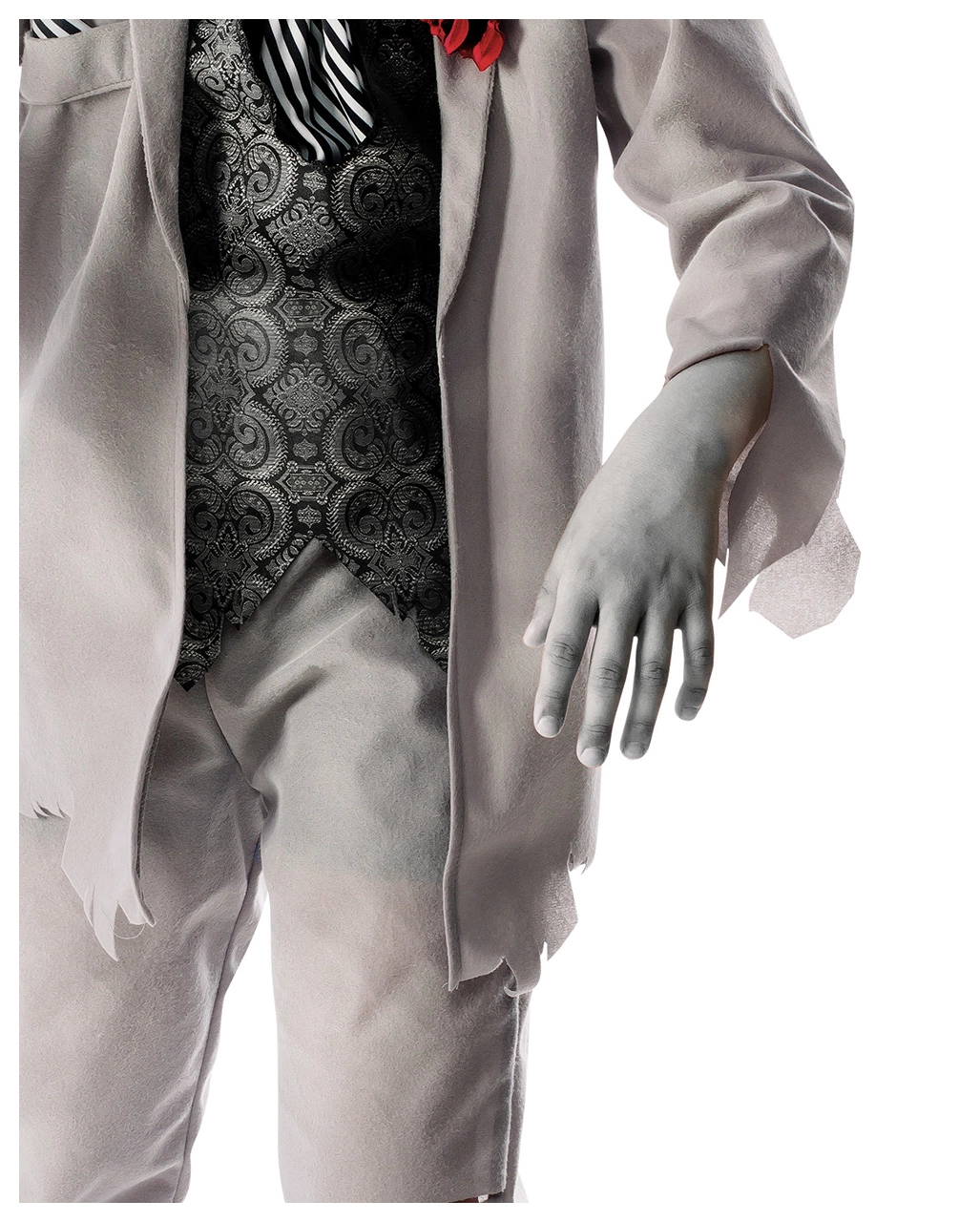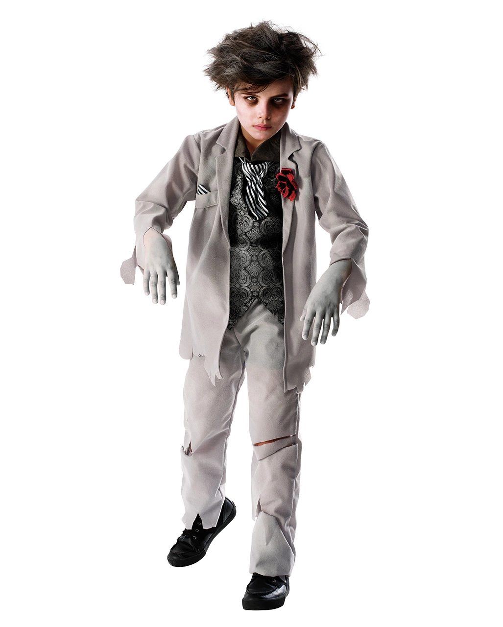 Als rastloser Geist eines unglücklichen Bräutigams verbreitet dein Junge Angst und Schrecken an Halloween. Und wie schaurig er dabei aussieht! Das Gespenster Bräutigam Kostüm für Kinder wird ihm beim diesjährigen Trick or Treat Beutel viele Süßigkeiten einbringen. Wer will es sich schon mit einem toten Bräutigam verscherzen. Als spukender Geist im Anzug ist dein Kind der Hit an Halloween!