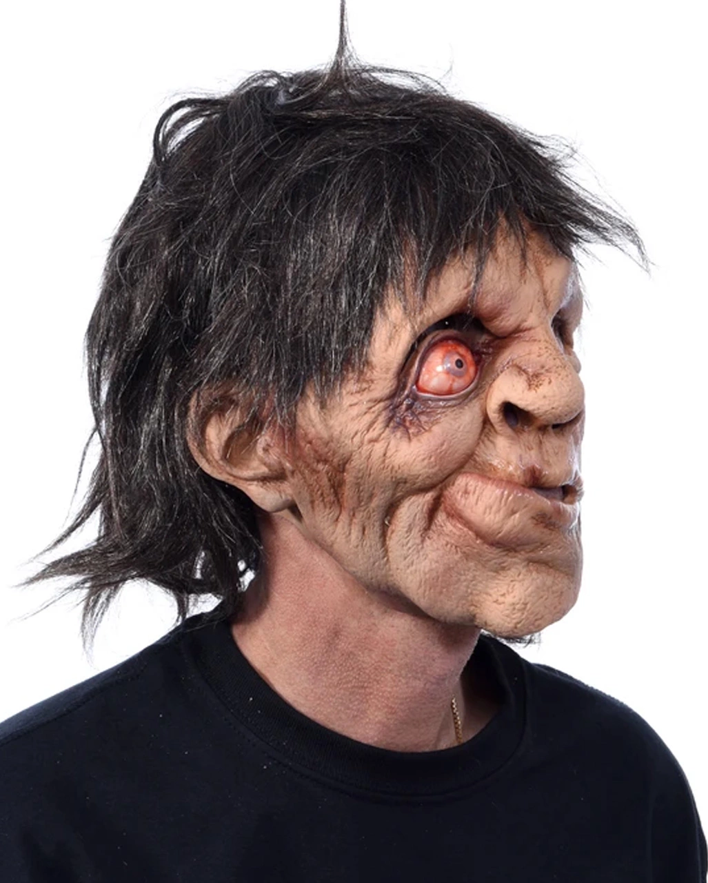 Die Horror Maske lehrt einem wirklich das Fürchten und nicht nur Esmeralda wäre total entsetzt. Die wunderbar gearbeitete Glöckner Maske mit total angeschwollenem, rotem Auge, schiefem, feuchtem, sabberndem Mund und schwarzem Kunsthaar hat einen perfekten Sitz und ist der Hit auf jeder Halloween oder Faschingparty!