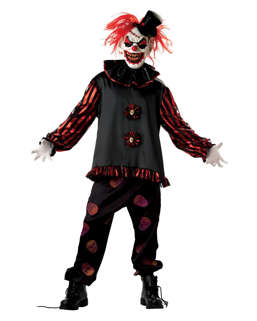 Halloween Clown Kostüm mit teuflisch grinsender Clownsmaske