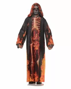 Ein von Flammen umspieltes düsteres Gerippe ziert die Vorderseite des Kinderkostüms Feuergeist. Stilisierte Feuerzungen lecken gierig an Ärmeln, Saum und Kapuze der Gruselverkleidung und sorgen für einen unheimlichen Anblick. Auf Halloween und Grusel Partys kannst du das Dämonen Kostüm einfach so tragen und bist bereits angemessen gruselig verkleidet. Dazu noch die Skeletthandschuhe für Kinder und die Totenschädel Gevatter Tod Kindermaske und fertig ist dein perfektes Halloween Kostüm!