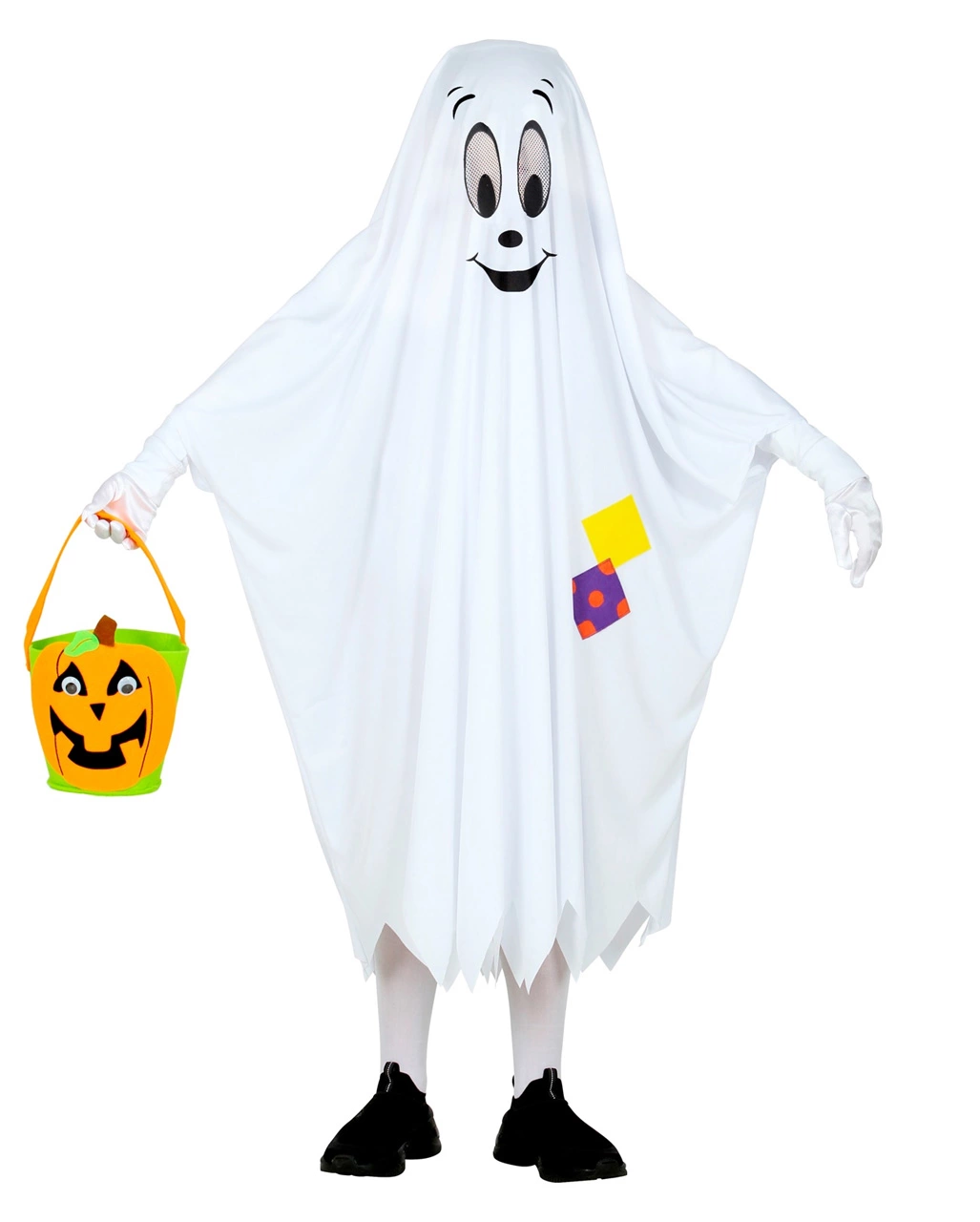 Ob als Halloween Verkleidung oder Kinder Faschingskostüm: Unser lustiger Geister Poncho ist ideal, um dein Kind witzig zu kostümieren. Das Gespenster Kostüm kommt mit einem aufgedruckten Grinse-Gesicht und Print Patches auf der Brust. Es ist eine unkomplizierte Verkleidung für den 31. Oktober und kann selbstverständlich auch als Kinder Faschingskostüm getragen werden. Nun fehlt nur noch das passende Körbchen für die vielen leckeren Süßigkeiten – auch das findest du in unserem Onlineshop!