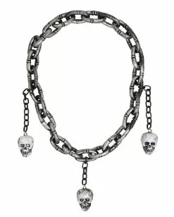 Die Henker Halskette mit Totenköpfe sorgt für die gruselige Aura, wenn du als Sensenmann zur Motto Party gehst. Ein martialische Glieder Kette mit Totenschädeln gehört schließlich zu jedem guten Styling von Gevatter Tod dazu. Auch als unbarmherziger Henker oder als unheimlicher Reaper beim Live Rollenspiel hast du mit der Kette in geniales Accessoire.