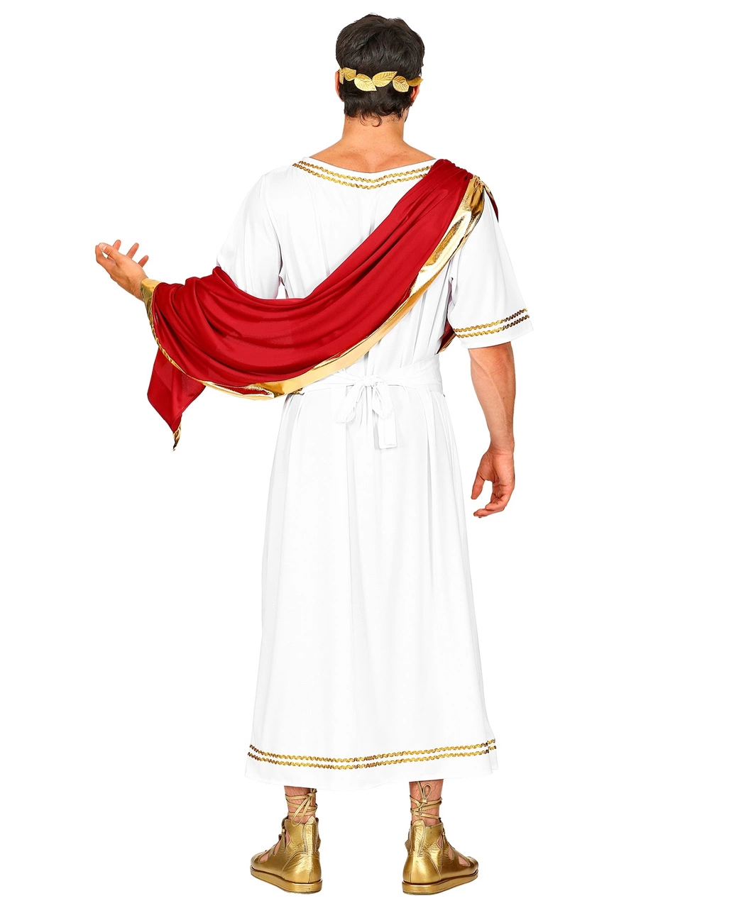 Das Römischer Kaiser Toga Kostüm ist eine stilechte Römer Tunika, die dich zum römischen Imperator werden lässt. Die Toga ist weiß und mit roter Schärpe versehen. Der goldene Saum verleiht dem Faschingskostüm eine edle Anmutung. Ebenso wie der goldfarbene Lorbeerkranz, der zum den Kostüm Set dazu gehört. Der Gürtel komplettiert das Römer Kostüm, das in verschiedenen Größen von S bis XXL erhältlich ist.