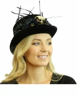 Du magst es düster und mystisch. Mit dem schwarzen Zylinder mit Blüten & Krähenschädel hast du das perfekte Accessoire für diesen Look. Als Voodoo Hexe oder als Gothic Fee, dein Kopfschmuck passt tadellos zum deinem Styling als Kind der Nacht. Schließlich ist dein eleganter viktorianischer Damenzylinder mit Rabenschädel und schwarzen Rosen verziert. Als Zeichen deiner Verbindung mit der düster-magischen Welt.