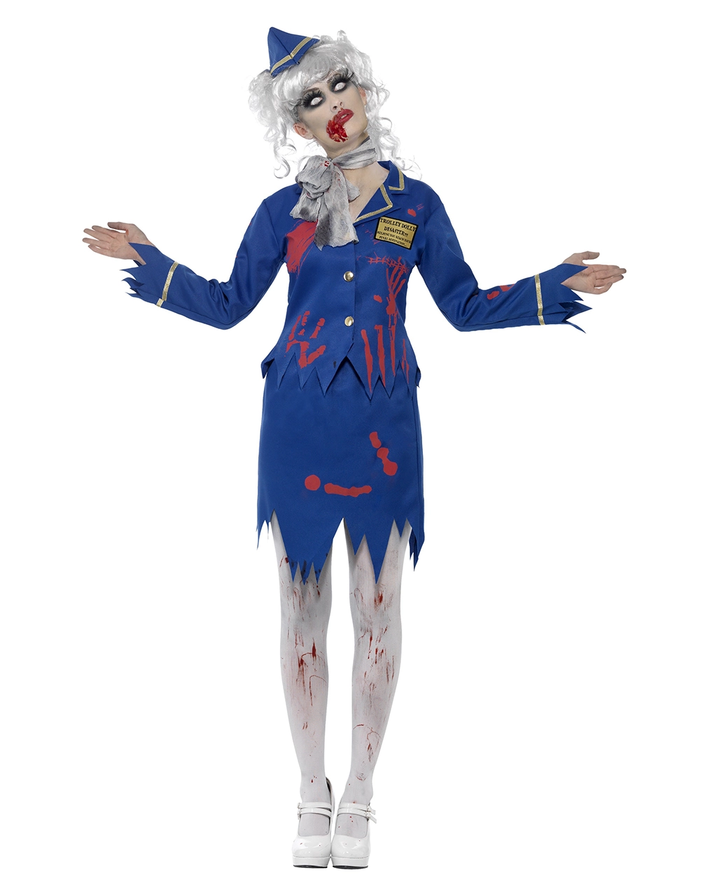 Flugzeuge transportieren die Menschen in kürzester Zeit über den gesamten Erdball. Allerdings ist das Fliegen in Zeiten terroristische Bedrohung auch ein Risiko-Faktor. Wenn wie in dem Splatterfilm „Flight of the living dead“ auch noch Untote in luftiger Höhe ihr Unwesen treiben, wird diese Gefahr noch vergrößert Mit dem Zombie Stewardess Outfit kannst auch du in die Rolle eines fliegenden Untoten schlüpfen.